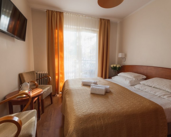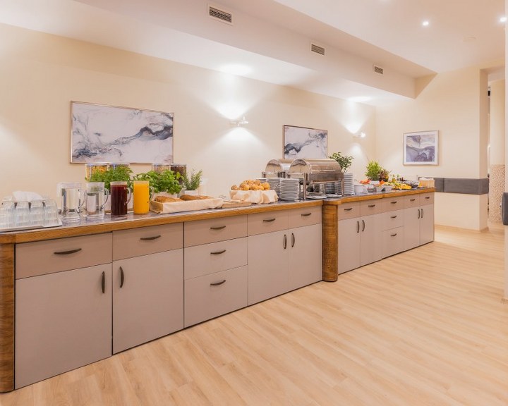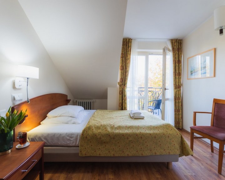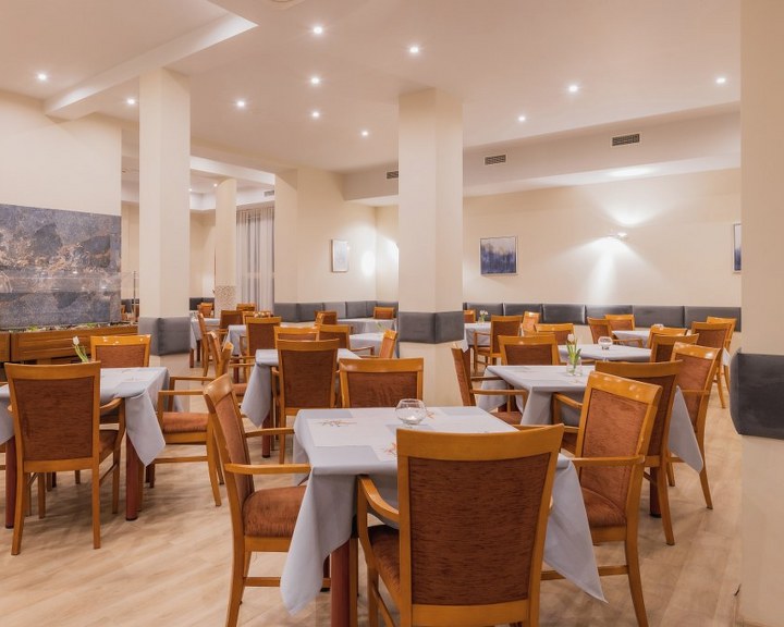 historisches Gebäude vereint historischen Charme mit hohem Komfort. Elegante Zimmer mit 10 bis 14 Quadratmetern bieten Ihnen in einem charmanten Ambiente außergewöhnliche Entspannung. Die meisten Zimmer verfügen über einen eigenen Balkon. Ein Aufzug befindet sich im zentralen Teil des Gebäudes. Täglich servieren wir Ihnen in unserem Buffetrestaurant ein köstliches Frühstück und Abendessen. Die große Auswahl an warmen und kalten Speisen am Frühstücksbuffet wird selbst anspruchsvollste Gaumen zufriedenstellen. Wir sind stolz auf unsere hausgemachte Küche – wie bei Mama –, zubereitet mit frischen Zutaten und mit viel Liebe serviert.