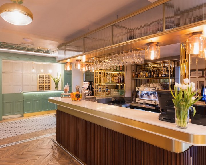 Aufzug, Rezeption, Bar, Café, Speisesaal, Spa, Wintergarten.